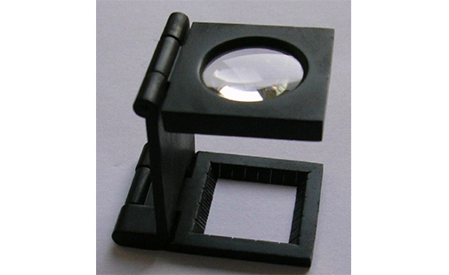 Folding, easy to open out, convenient to carry, consists of two pieces optical lens. The scale on the base to measure the size.
