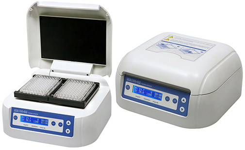 The MB100-2A and MK100-2A are designed for shaking 1-2 standard 96 well plates in the thermostat mode. The MK100-2A have only incubation functions. The MB100-2A have incubation and shaking functions. A distinctive feature for the MB100-2A and MK100-2A is two-side heating of microtest plates that allows achieving exact correspondence of the set and actual temperature in wells of the microtest plates.