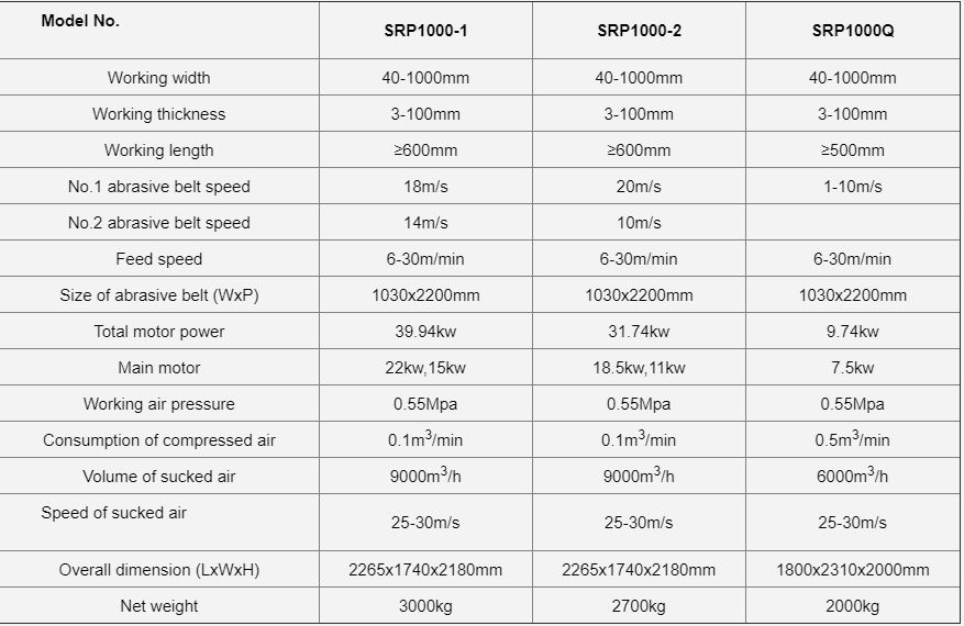 Model SRP1000 wide belt sander is suitable for calibrating and sanding door board, floor board, furniture board etc.