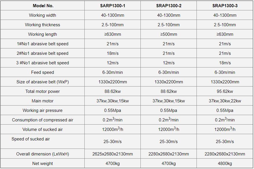 Model SRAP1300-2 is suitable for powerful calibrating sanding and especially for integrated materials board, solid board, block board etc.