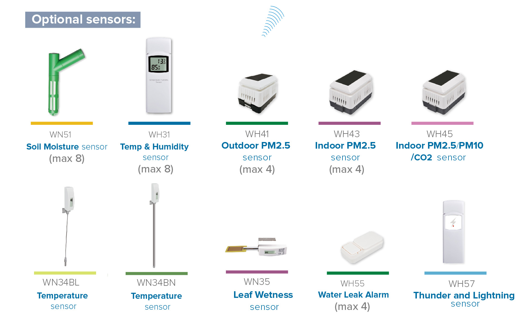 3) MAX 4 WH41 outdoor PM2.5 sensor or WH43 indoor PM2.5 sensor +